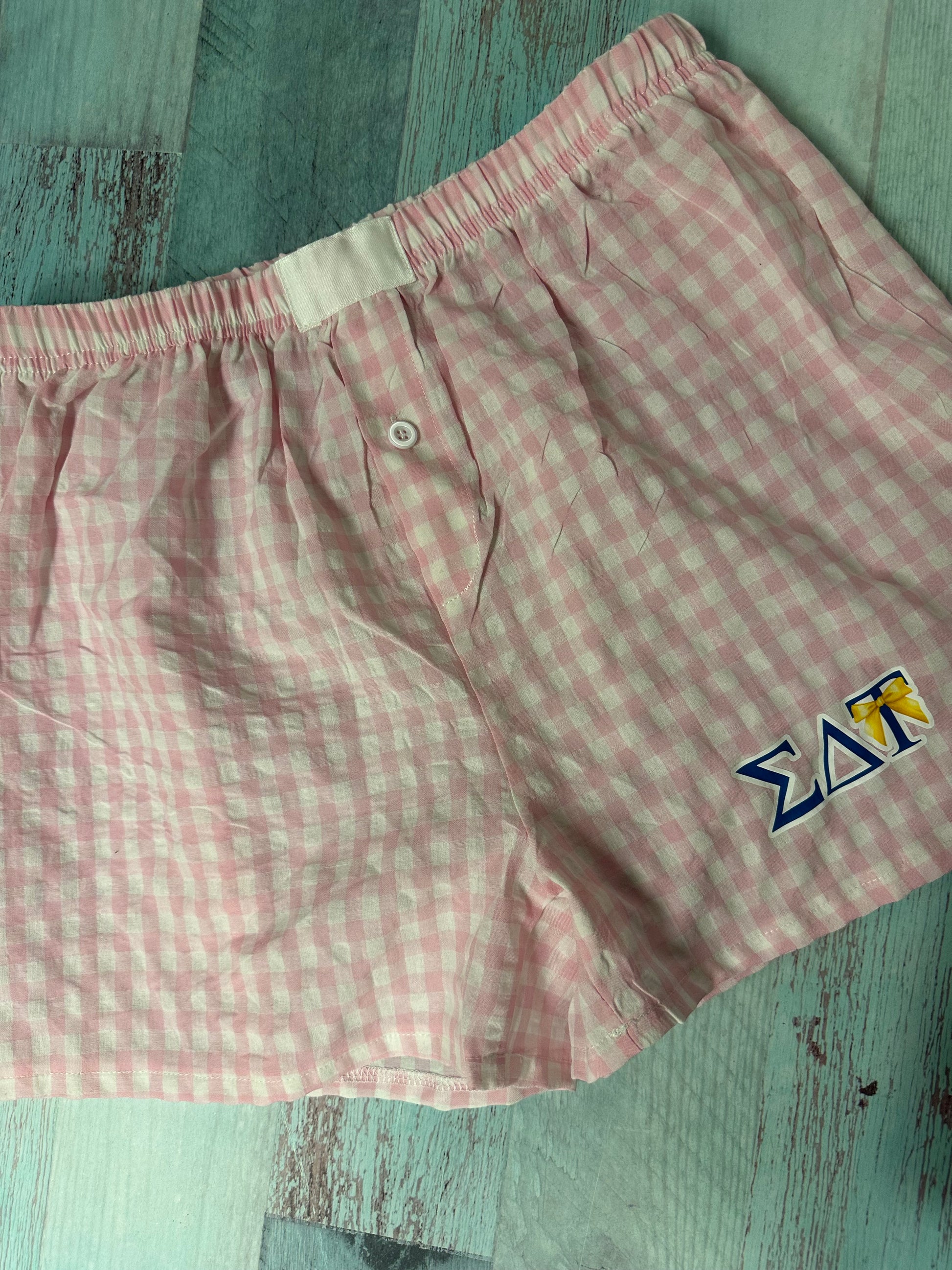 Cute and customizable Boxer Shorts! Perfect for showing off your school, camp, or sorority pride. Made with high-quality materials for ultimate comfort and style. Personalize your pair today and elevate your loungewear game. Available in a variety of sizes for the perfect fit.